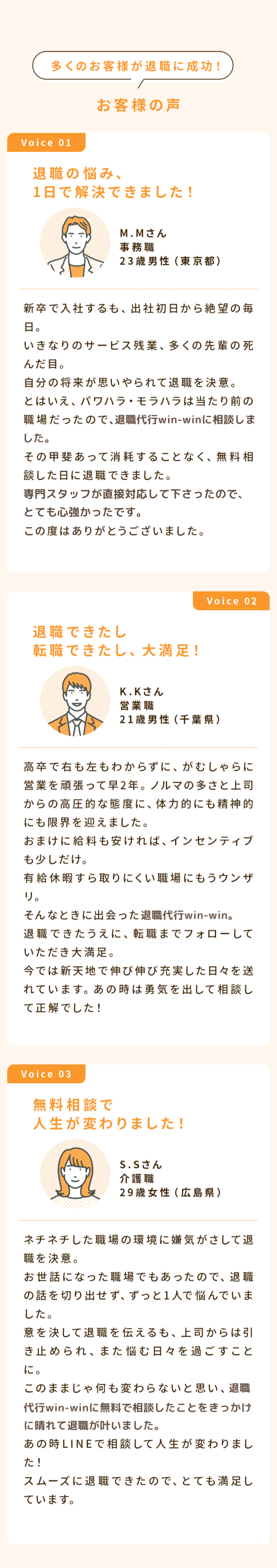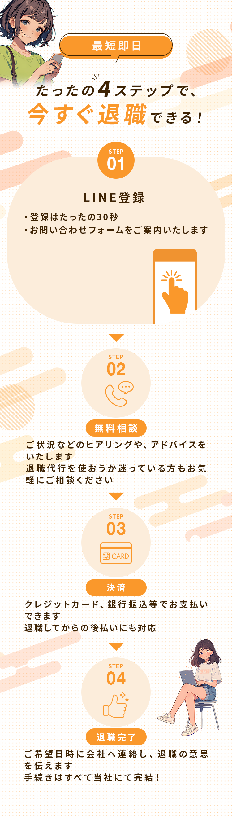 当社は、退職代行サービスの提供に必要な範囲で、下記のような個人情報を取得します。